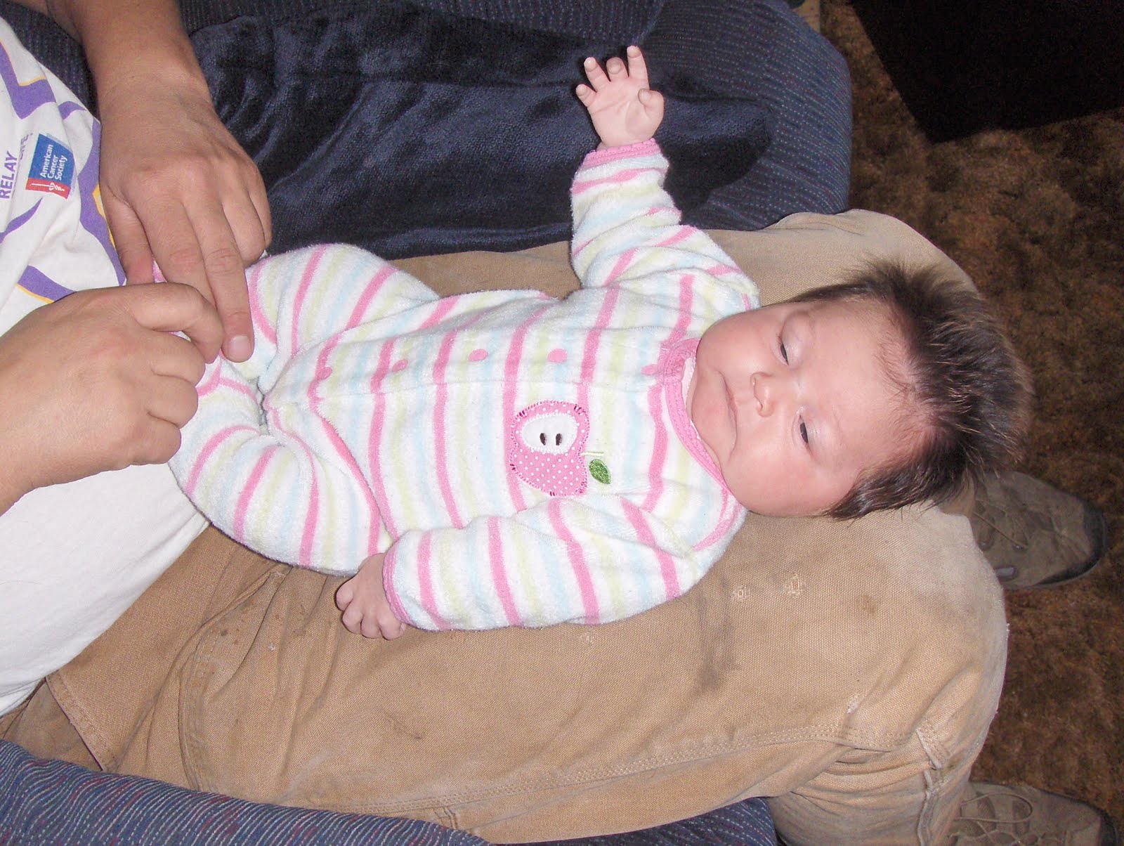 In the one below she is about 1 week old. She had just come from her bath so her hair was all slicked down. Notice the cheeks, she will have to grow into those!!!